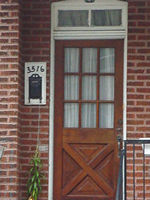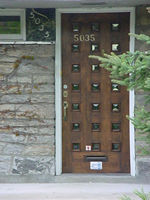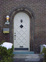 Entrance door 表玄関: 番地が幾つあるかにより、一世帯住宅か否かがわかる。冬の断熱効果を増す為、外気に触れる面を少なくする家の建て方である。 左右、または上下に数世帯がひとつ屋根の下に住む場合、複数の表玄関をもつ家もめずらしく無い。 玄関ドアは防犯上、内開きである。 ドア周りにいろいろな工夫を凝らし、チャーミングなファサードをデザインする。外観上、玄関は家の主役である。
