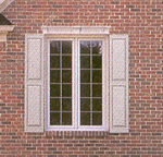 | シャッターと共に其の他の外壁装飾品をトータルコーディネートする事。破風の換気ルーバー、窓廻りモールディング、軒下モールディング等とスタイル、ボリュームを確認する。通常道に面している壁に付ける。 | ボリュームの出る部材である為、家の大きさとの釣合を考慮する事 玄関ドアと道に面している壁の窓に付けるのがこちらでは一般的である。またいろいろなスタイルがあるが、ひとつのスタイルに絞り統一を計る事。仕上げのカラーを施せるが、ほとんど白のまま使用され壁の色との調和を楽しむ。 |